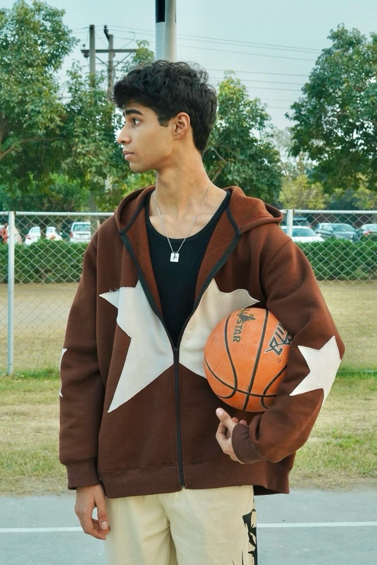 Cocoa Stellar Oversized Zip-Up Hoodie