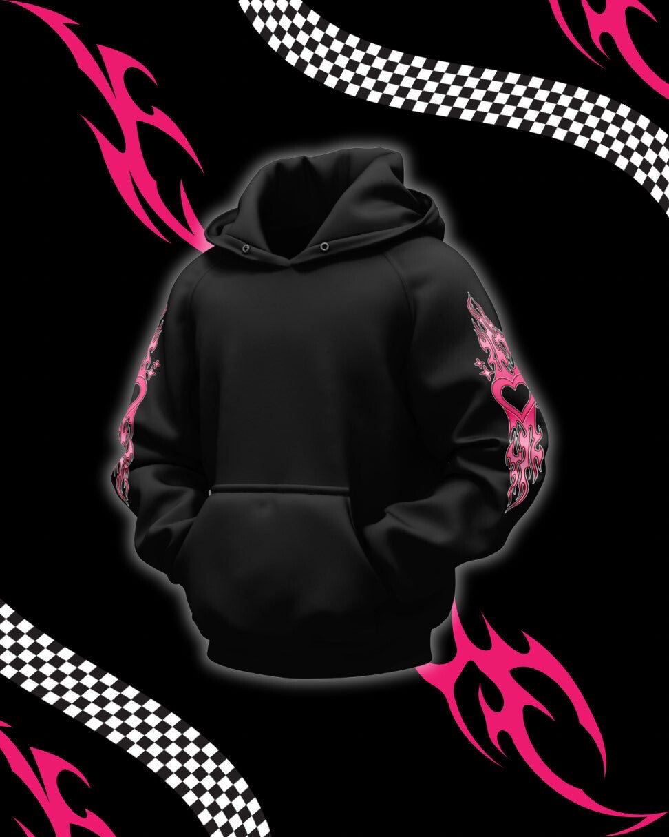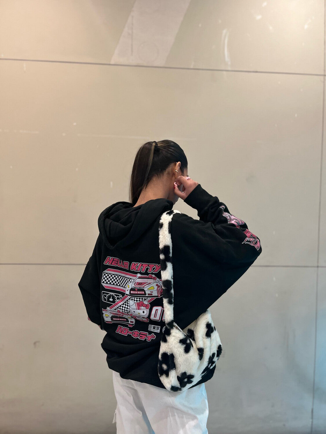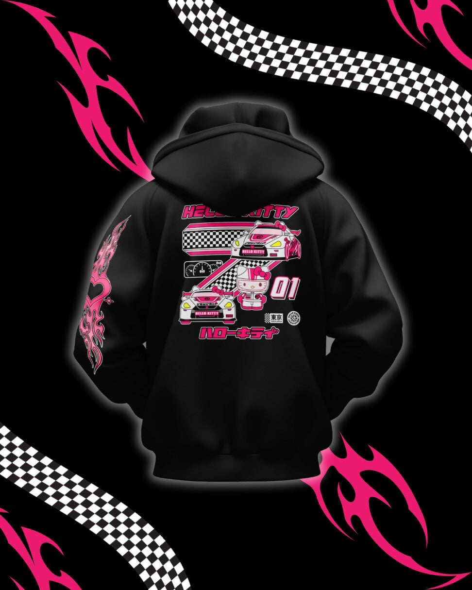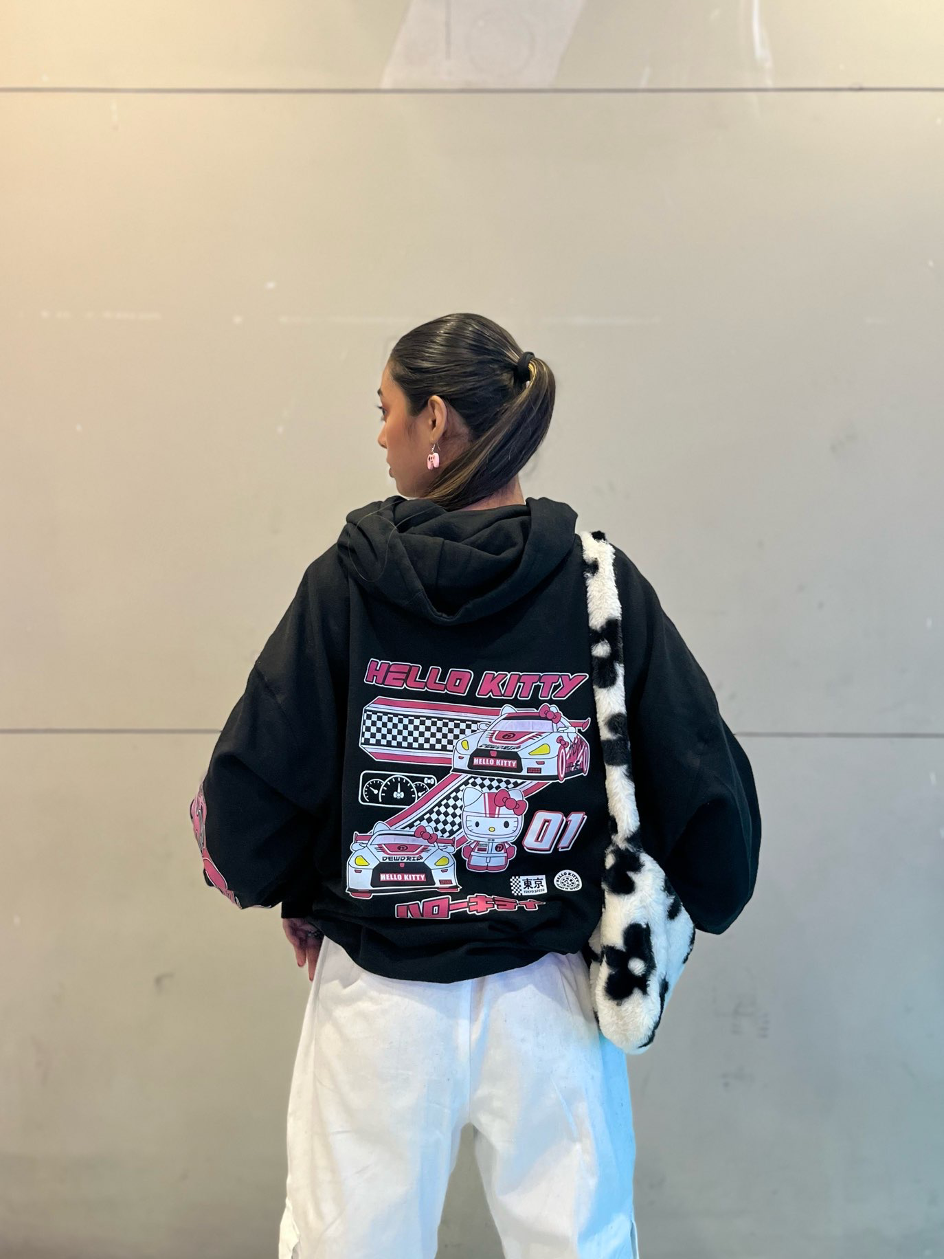 The Hello Kitty Racer Oversized Hoodie in black is the perfect blend of comfort and style. With its oversized fit and iconic Hello Kitty design, this hoodie is perfect for staying warm and making a statement. Made with high-quality materials, it offers both durability and comfort.