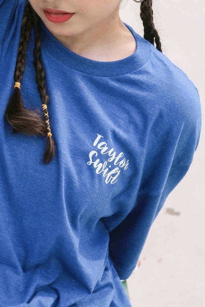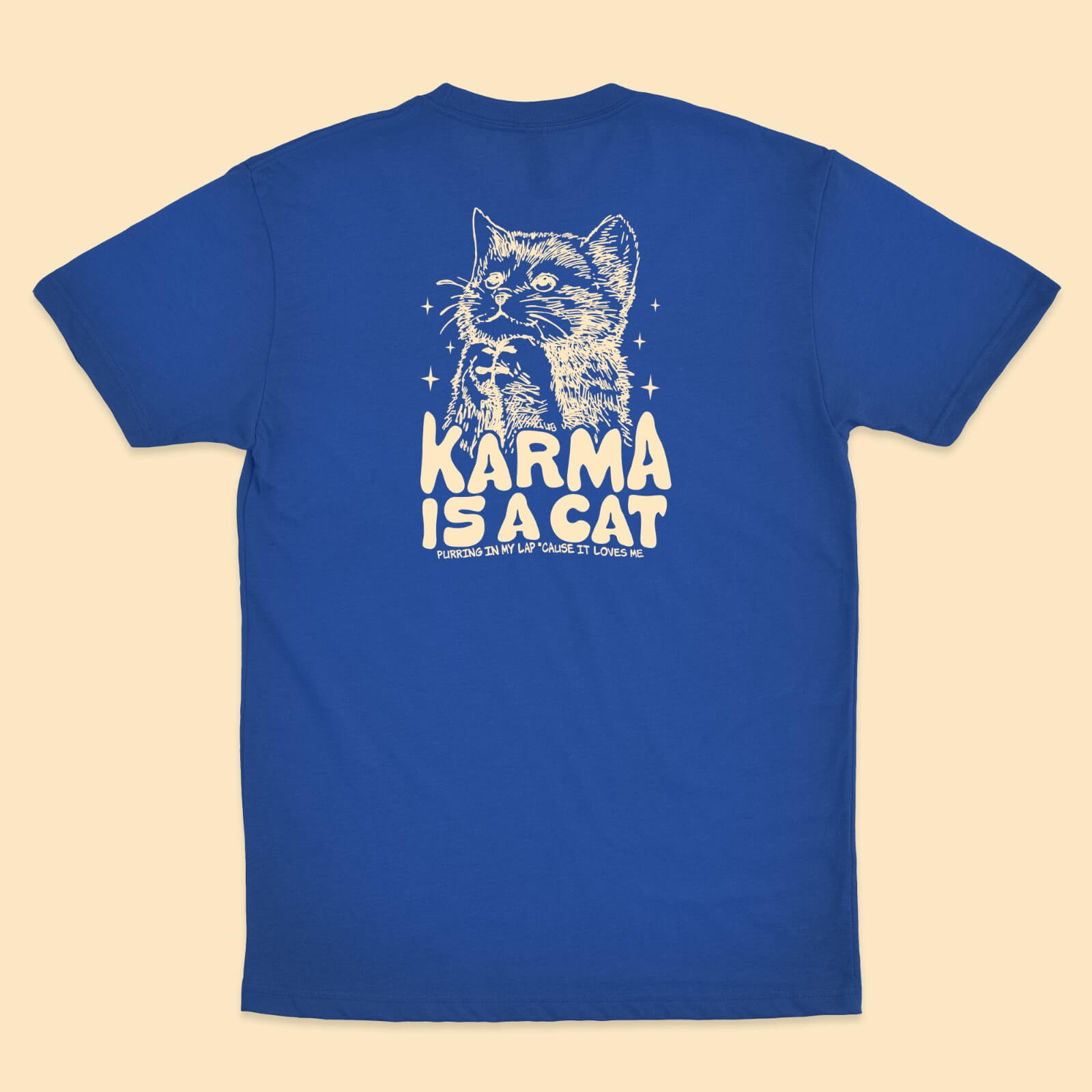 Taylor Swift "Karma Is A Cat" Oversized Drop Shoulder Blue Tee